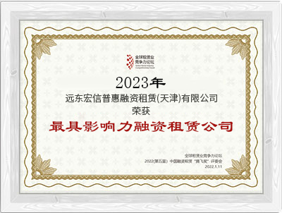 2023年荣获“最具影响力融资租赁公司”